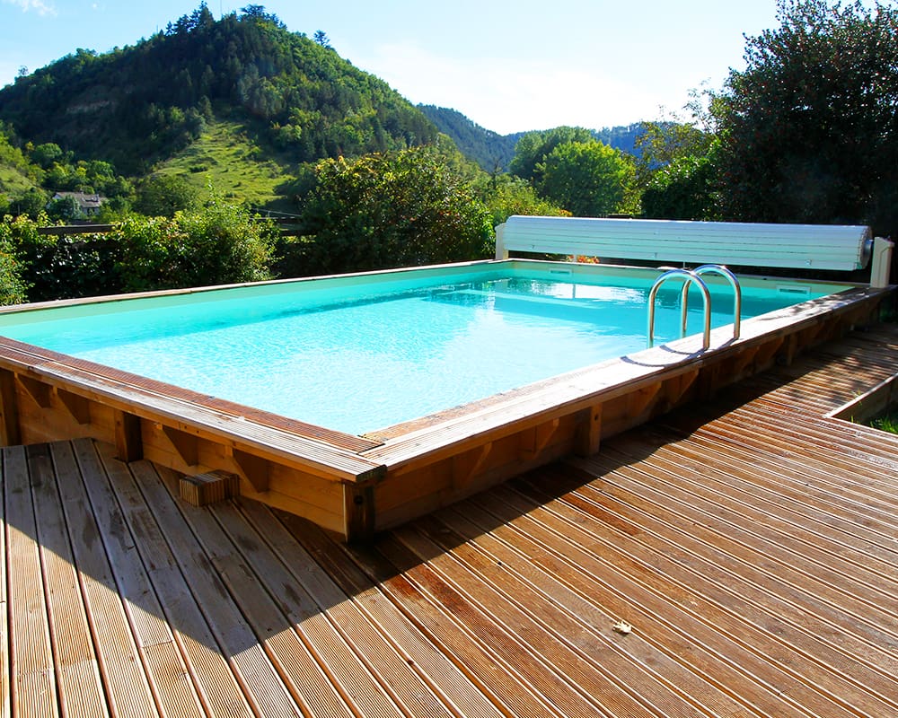Piscine bois Linéa 6,50 x 3,50 m – H. 1,40 m – liner gris