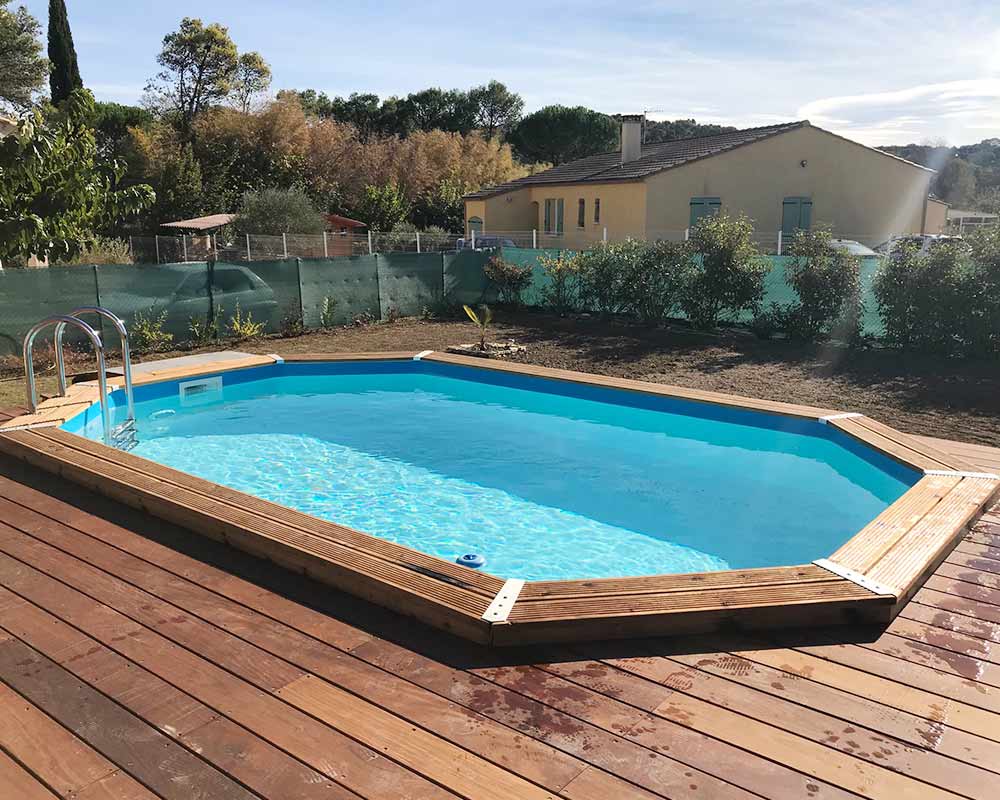 Piscine bois Sunwater 4,90 x 3,00 m – H. 1,20 m liner sable