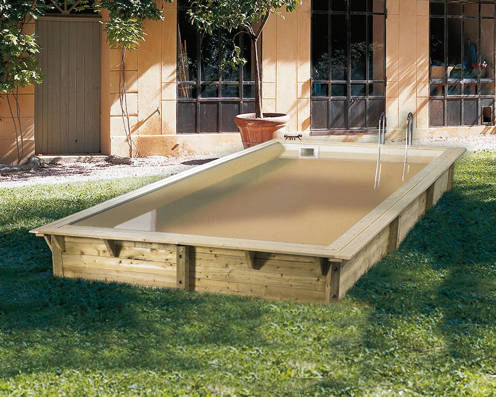 Piscine bois Sunwater 5,55 x 3,00 m – H. 1,40 m liner beige