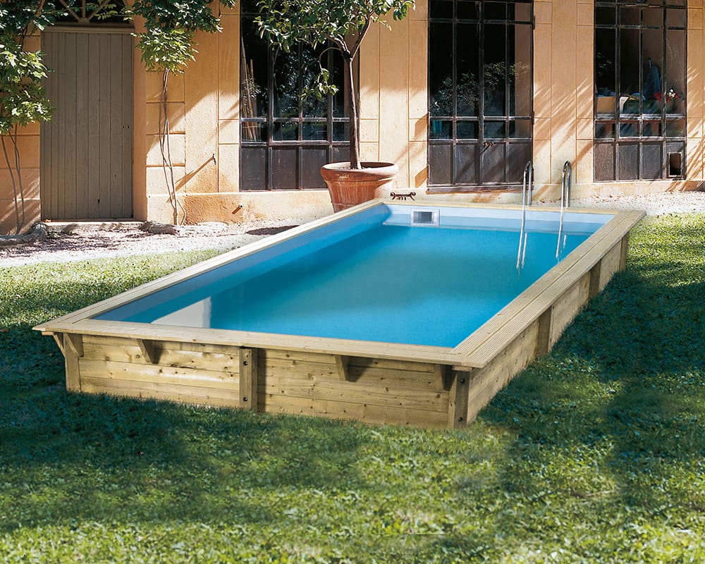 Piscine bois Sunwater 5,55 x 3,00 m – H. 1,40 m liner bleu