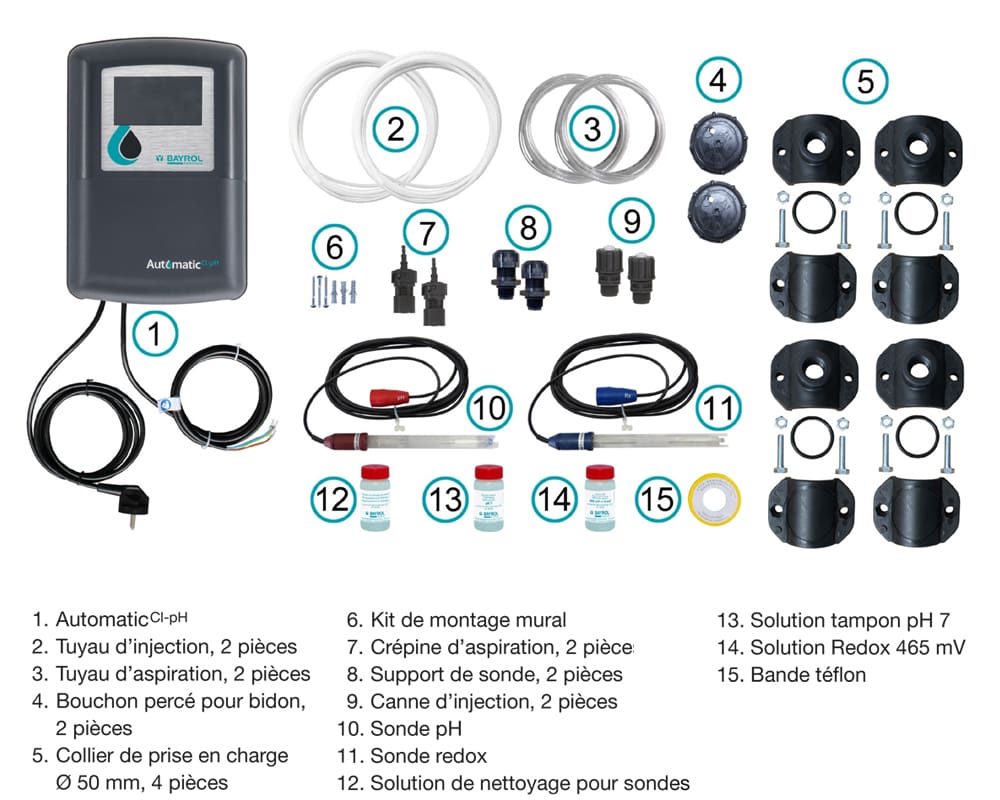 Inclus : Sondes, injecteur, crépine d’aspiration et tous les accessoires d’installation
