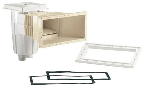La couleur beige de la partie visible du skimmer permet une intégration parfaite de la pièce à sceller avec le revêtement.