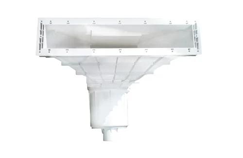 La couleur blanche de la partie visible du skimmer permet une intégration parfaite de la pièce à sceller avec le revêtement.